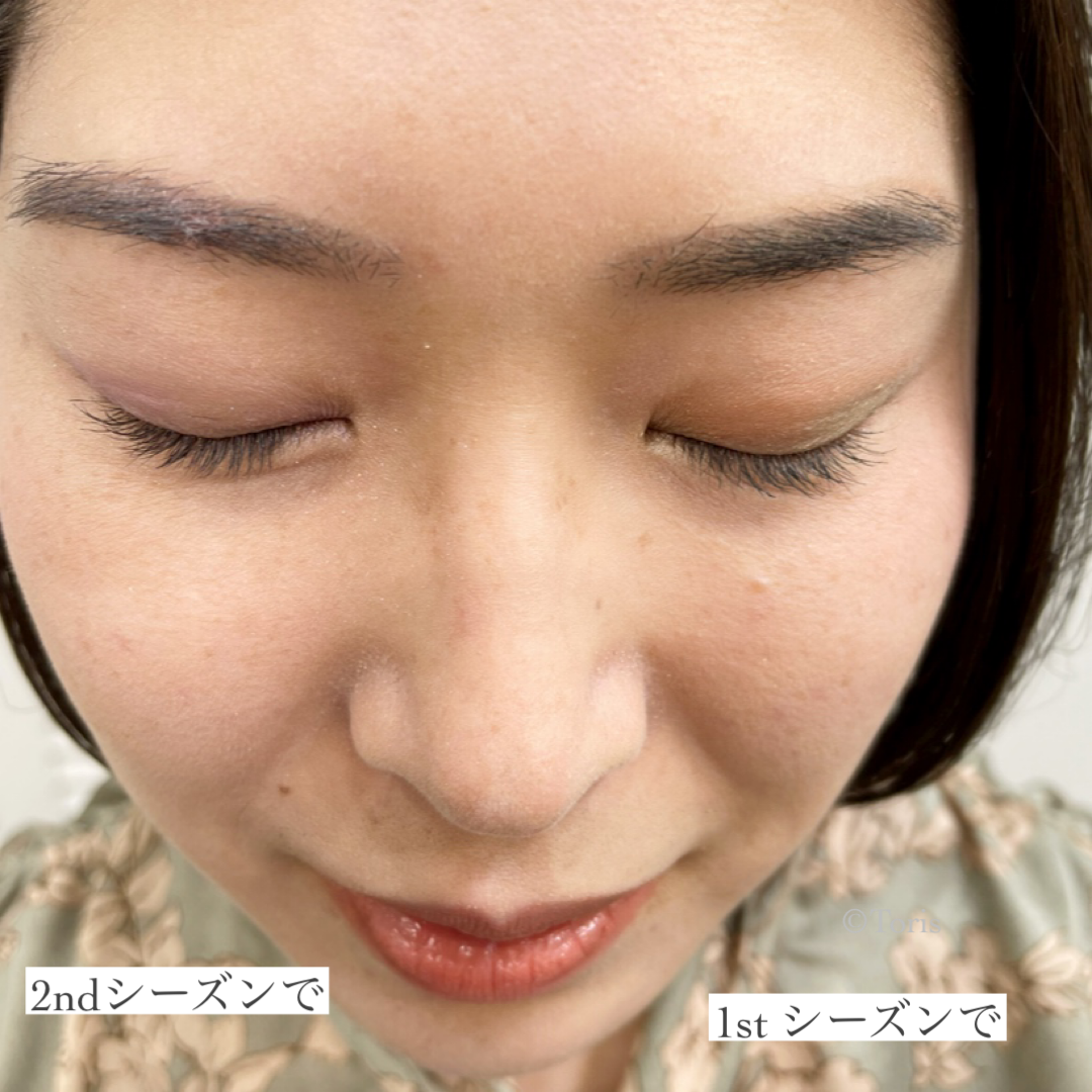 私は半顔づつ、1stシーズンカラーと2ndシーズンカラーでメイクを試させて頂きました。